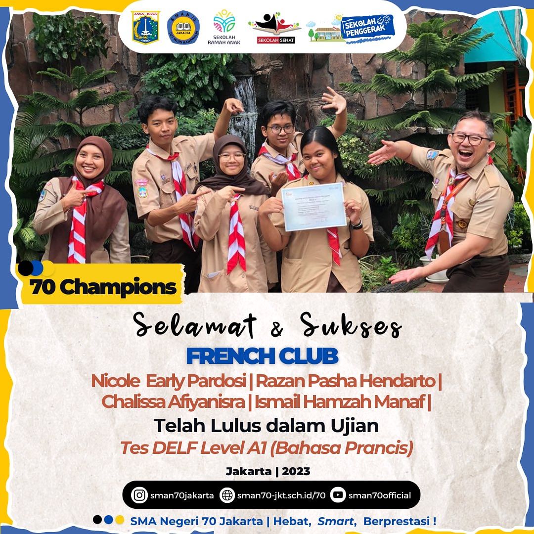 🏆70 Champions🏆 Hallo, Sobat bulungan !Ada kabar gembira dari teman kita.🏅ERLY FIRLIANA RAMONA(XI G) berhasil meraih 🏆 Juara 1 Atletik Putri ✨ Ajang Kompetisi Olimpiade Olahraga Siswa Nasional Tingkat Wilayah II Kota Administrasi Jakarta Selatan✨ Selamat Erly ! Harapan semoga hal ini bisa menginspirasi sobat bulungan 70 dan tak lupa terima kasih kepada Para pendukung kegiatan yang sudah terlibatyang mana membantu kesuksesan Erly.