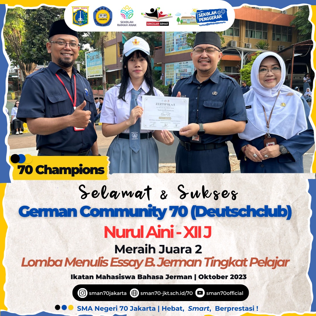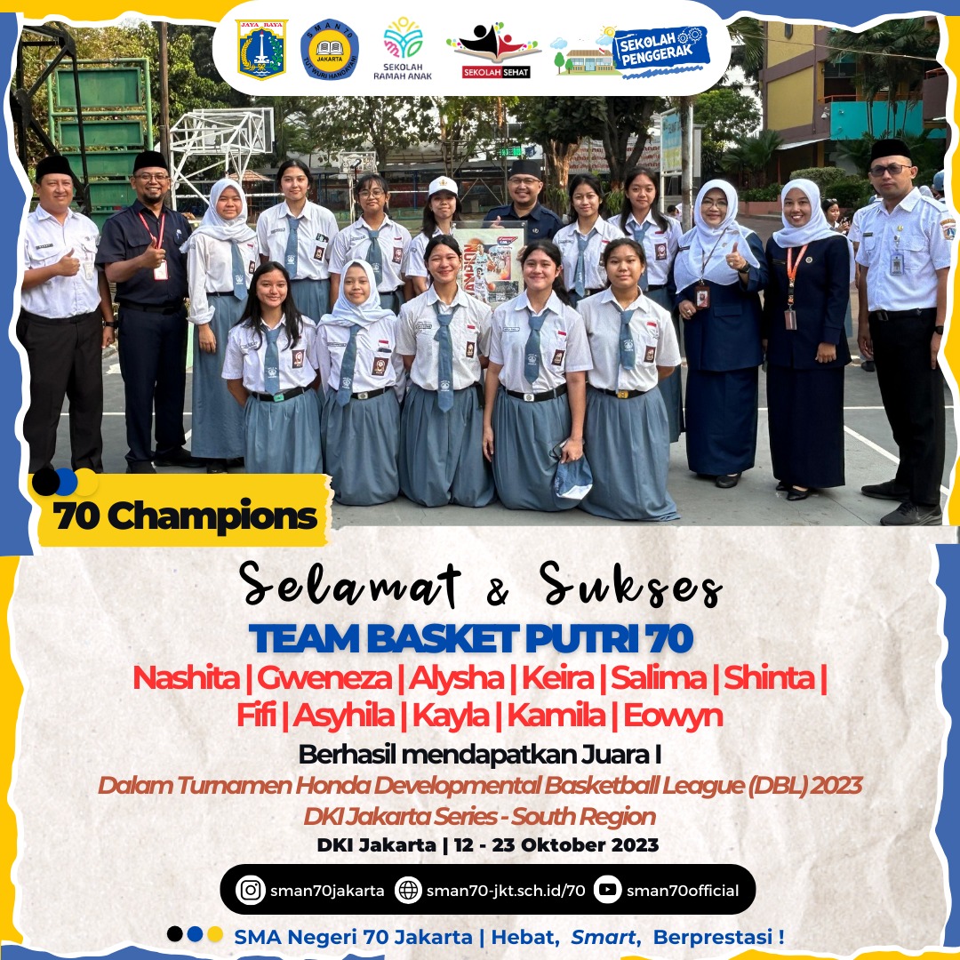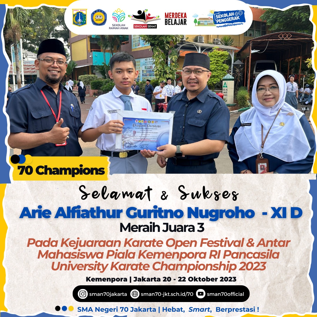 🏆70 Champions🏆 Hallo, Sobat bulungan !Ada kabar gembira dari teman kita yang tergabung dalam Team PMR 70.berhasil meraih🏆 Juara 1 Lomba Mading Ayo Siaga Bencana Tingkat Wira 🏆 Juara 1 Travelling Kepemimpinan Tingkat Wira 🏆 Juara 2 Lomba Wahana KepalngMerahan Tingkat Wira 🏆 Juara 2 Lomba Kesehatan Remaja Tingkat Wira ✨ South Jakarta Youth Festival, OMI Jakarta Selatan✨Selamat PMR 70! Harapan semoga hal ini bisa menginspirasi sobat bulungan 70 dan tak lupa terima kasih kepada Para pendukung kegiatan yang sudah terlibatyang mana membantu kesuksesan Team PMR 70.