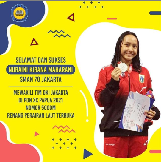 Beberapa siswa dan siswi dari SMAN 70 Jakarta terpilih untuk menjadi bagian dari kontingen atlet Propinsi DKI Jakarta yang akan berlaga di PON XX Papua Tahun 2021 ini. Siapa saja mereka? Yuk, kita simak infografis berikut ini.