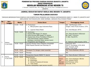 Rapat Kerja SMAN 70 tahun 2020-2021 dilaksanakan secara virtual
