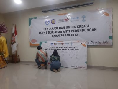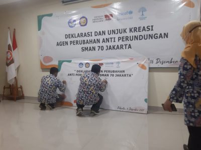 Pada hari Kamis, 16 Desember 2021 bertempat di Ruang Multimedia 70 siswa-siswi, guru dan orang tua melakukan deklarasi anti perundungan. Deklarasi ini dipimpin oleh 30 siswa agen perubahan yang diikuti oleh seluruh warga sekolah, baik itu yang hadir di ruang Multimedia maupun yang mengikuti kegiatan melalui live streaming kanal Youtube BPH MPK/OSIS SMAN 70 Jakarta.